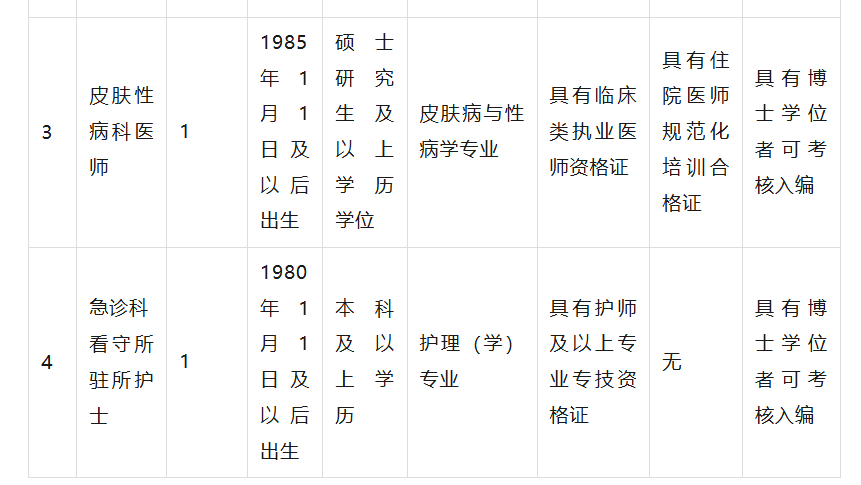 注:经住培合格的本科学历临床医师,住培合格证书中的培训专业与此次招聘医师岗位“专业条件要求”的专业完全一致的,按专业学位硕士研究生同等对待。